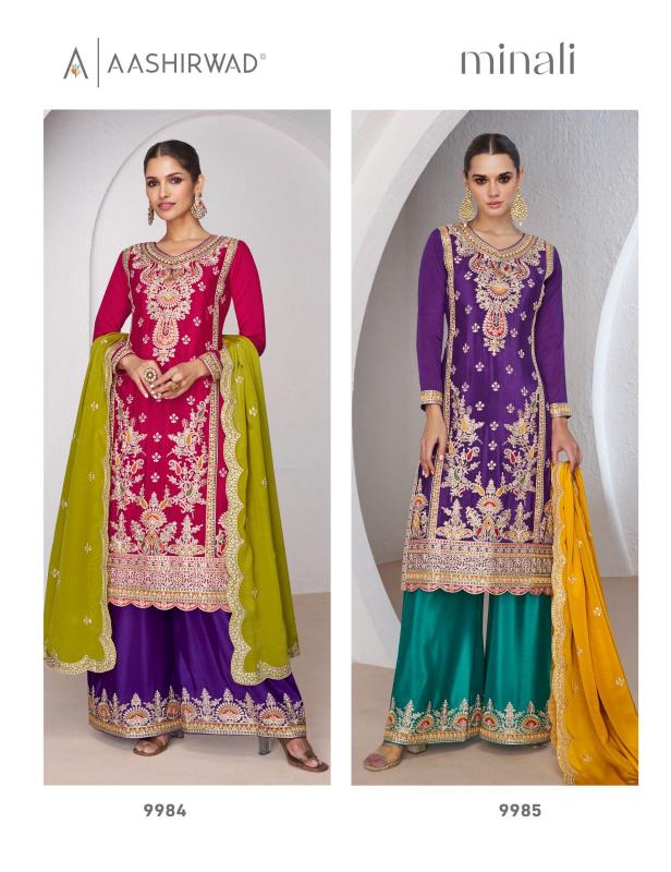 | Short Description: | Aashirwad creation minali premium chinnon silk pakistani salwar kameez wholesale |