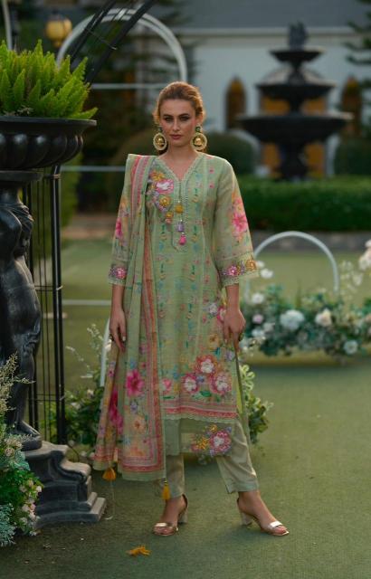 Kailee fashion phulkari pure linen top bottom dupatta branded kurti wholesale